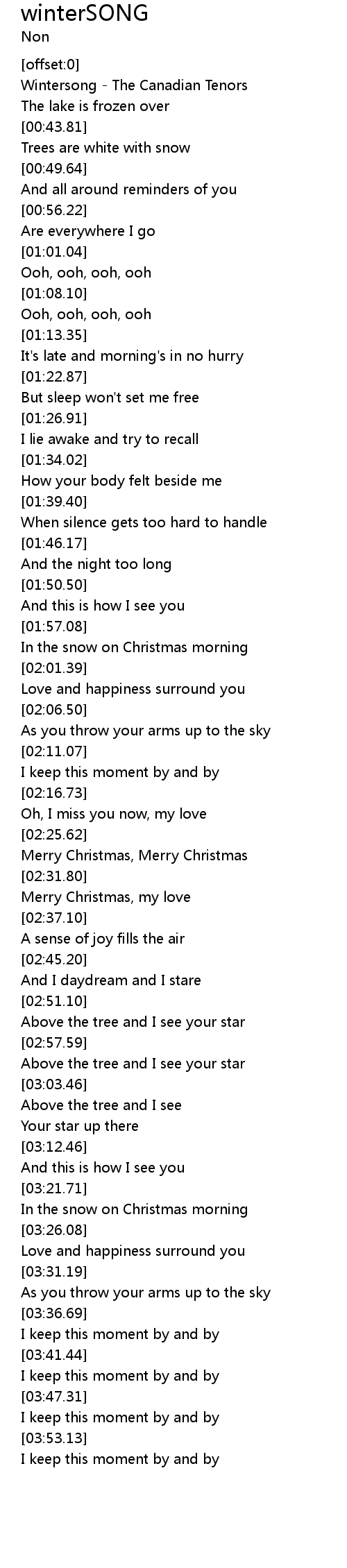 | [00:01.07] | Wintersong - The Canadian Tenors |