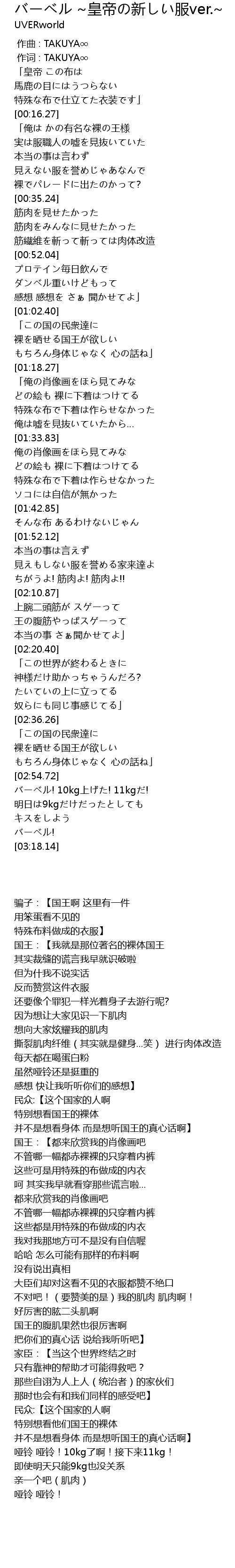 | [02:04.15] | 見えもしない服を誉める家来達よ |