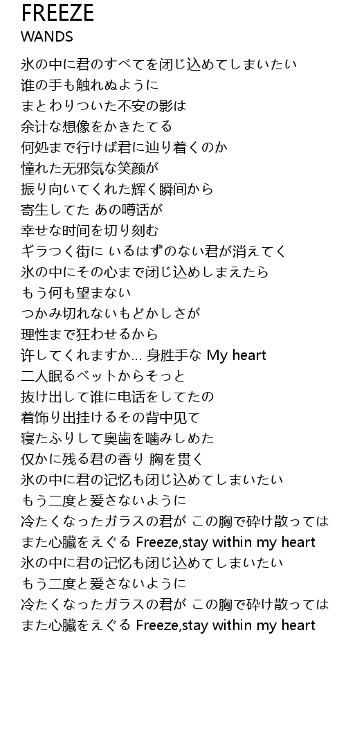 | [03:10.000] | また心臓をえぐる Freeze,stay within my heart |
