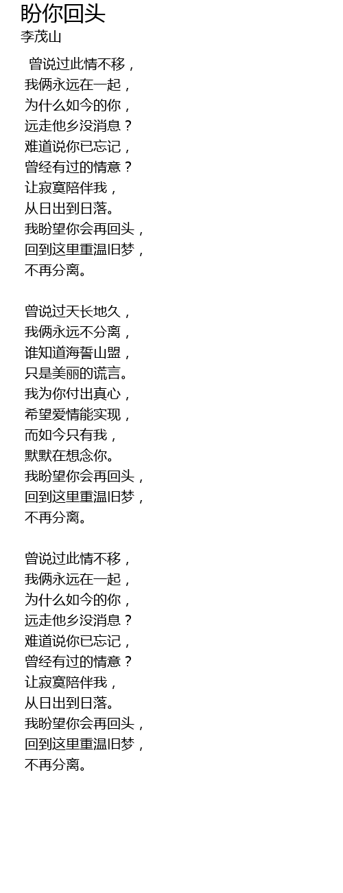 | wǒ pàn wàng nǐ huì zài huí tóu, | |