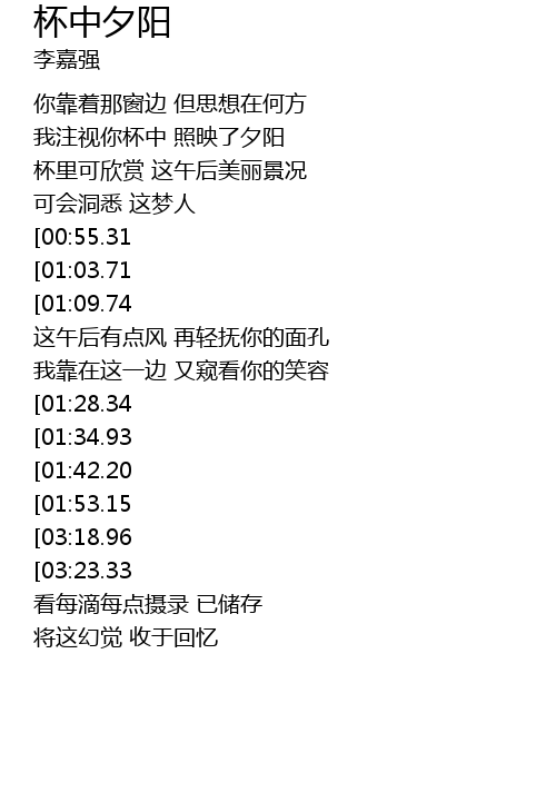 | [00:31.20] | 我注视你杯中 照映了夕阳 |