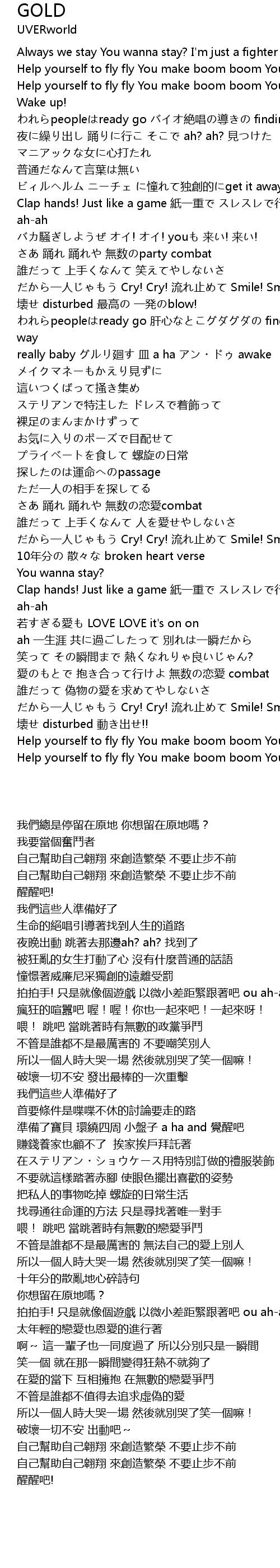 | [03:40.850] | Help yourself to fly fly You make boom boom You don't stop Wake up! |