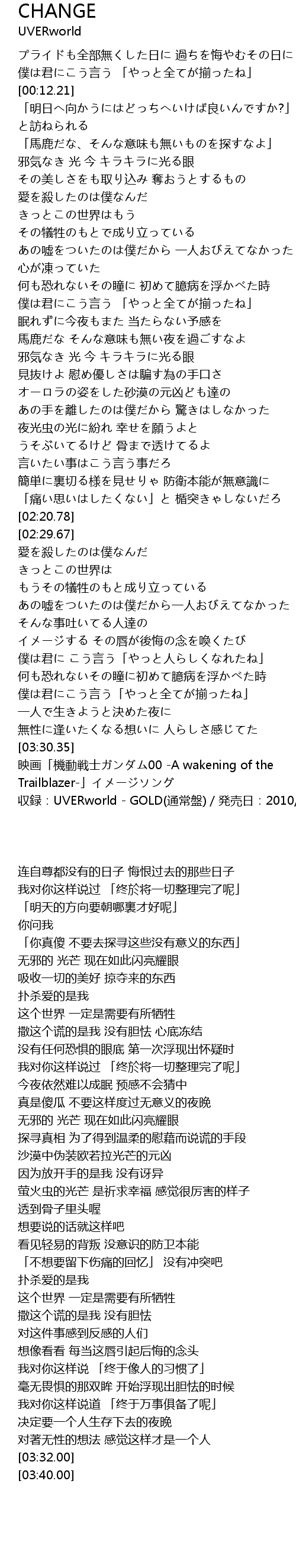 | [03:40.00] | 収録:UVERworld - GOLD(通常盤)/発売日:2010/03/31 |