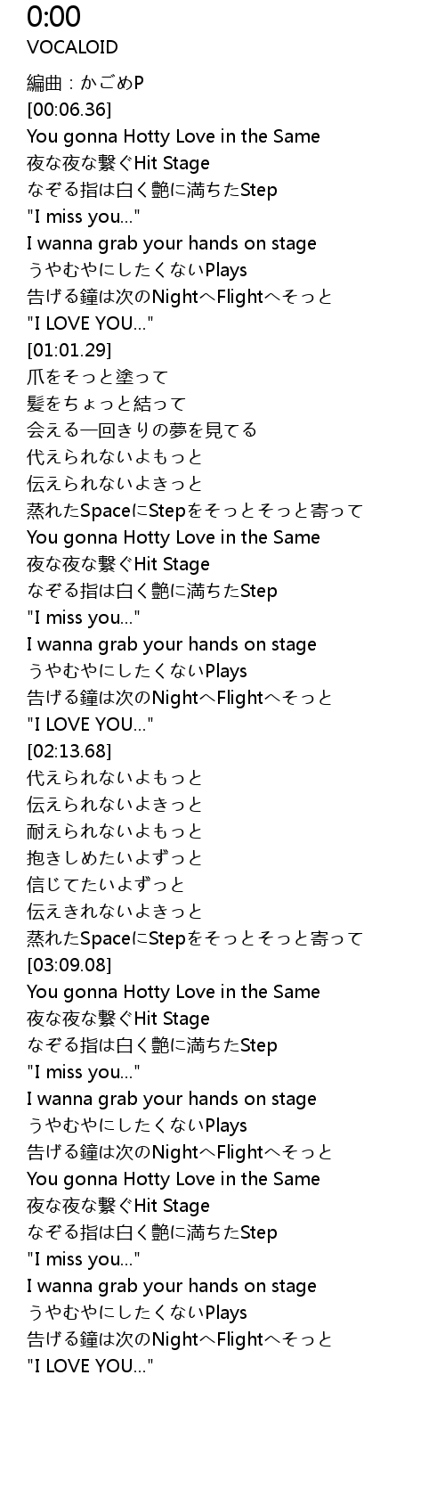 | [00:32.42] | 夜な夜な繋ぐHit Stage |