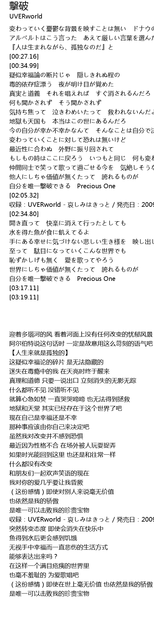 | [02:07.32] | 収録:UVERworld - 哀しみはきっと/発売日:2009/10/28 |