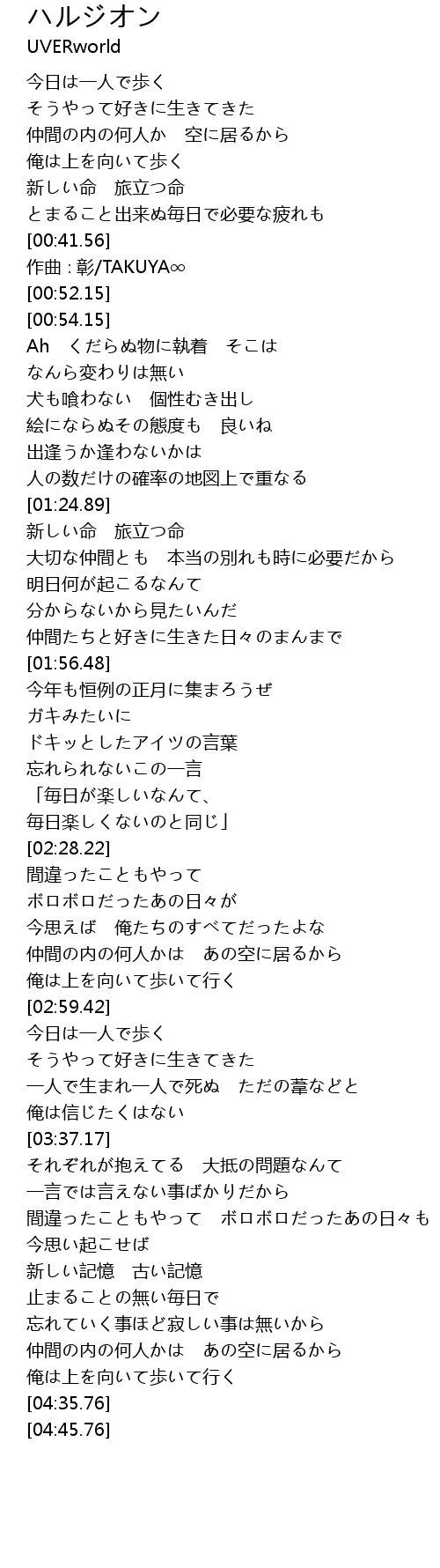 | [01:48.23] | 仲間たちと好きに生きた日々のまんまで |