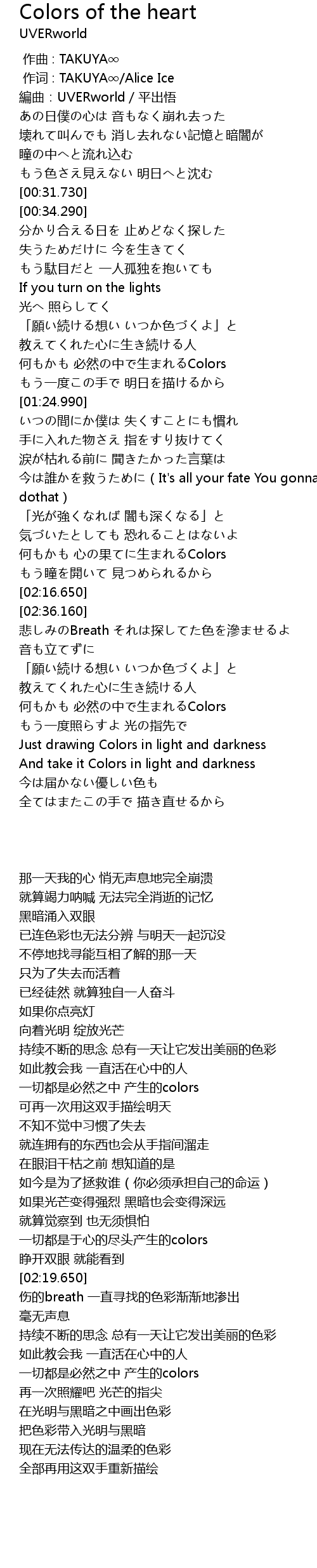| [02:04.490] | 何もかも 心の果てに生まれるColors |