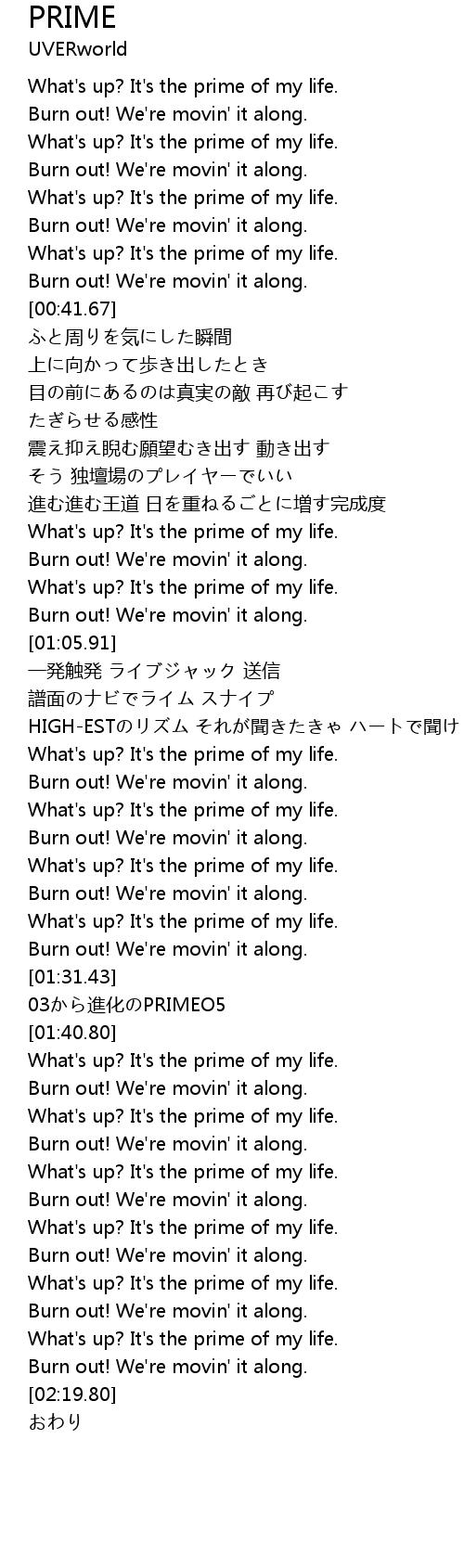 | [02:02.39] | What' s up? It' s the prime of my life. |