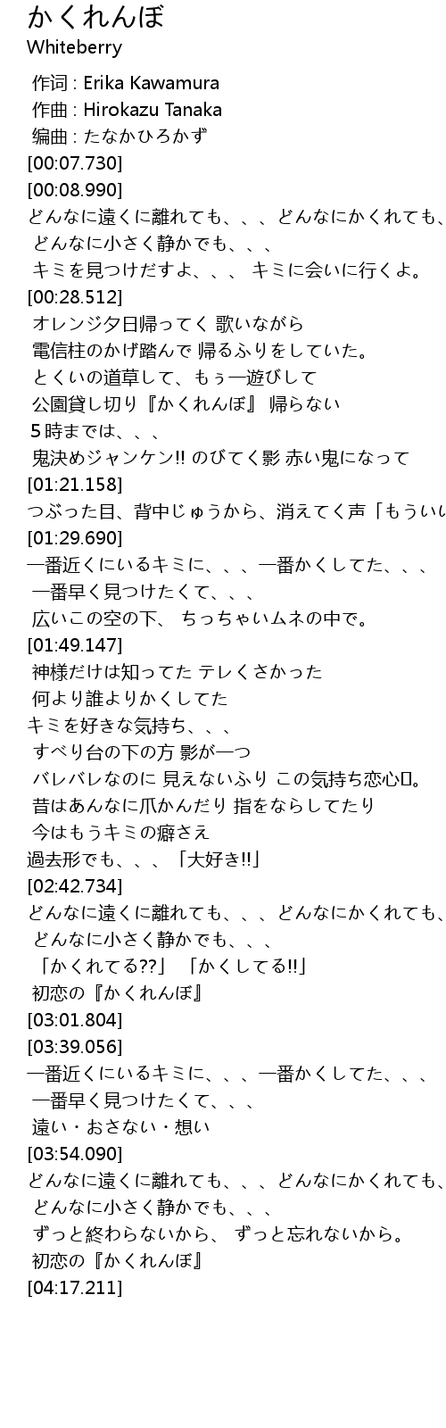 | [04:12.707] | 初恋の『かくれんぼ』 |