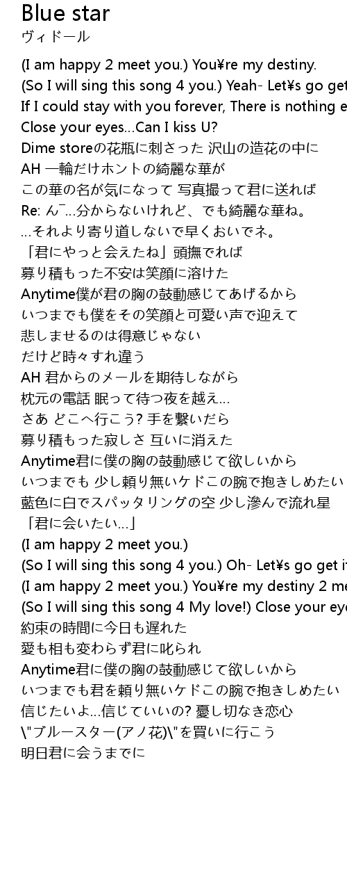 | (So I will sing this song 4 you.) Yeah- Let¥s go get 「Blue star」 | |