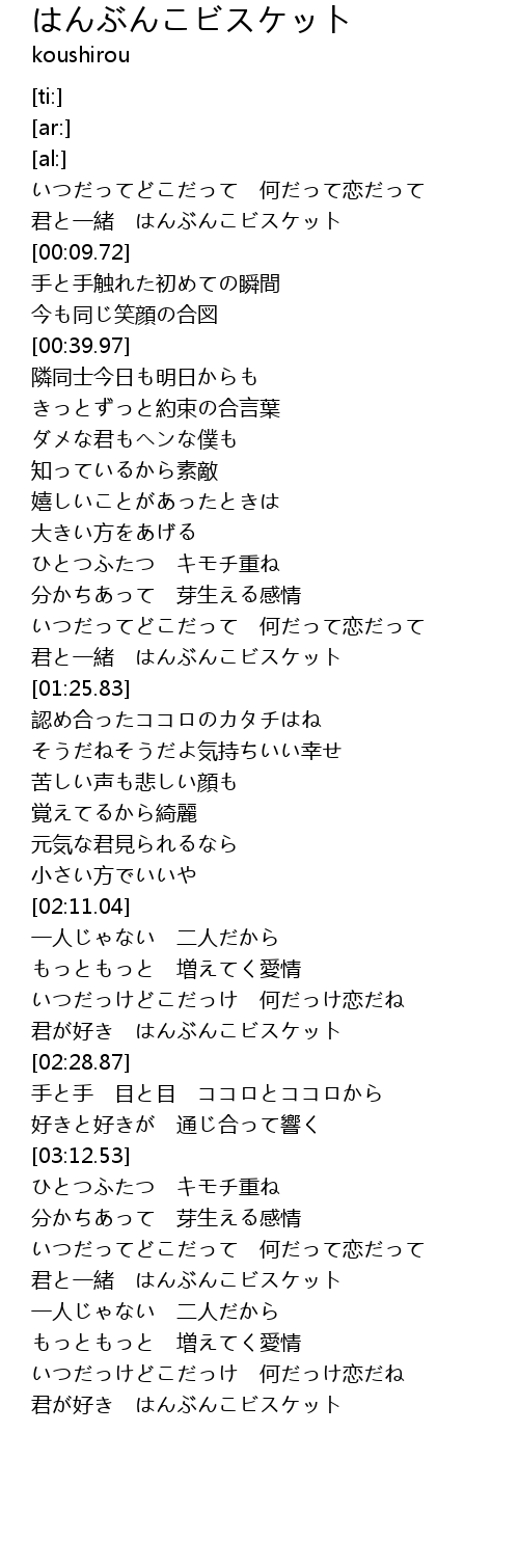 | [03:25.63] | 君と一緒 はんぶんこビスケット |