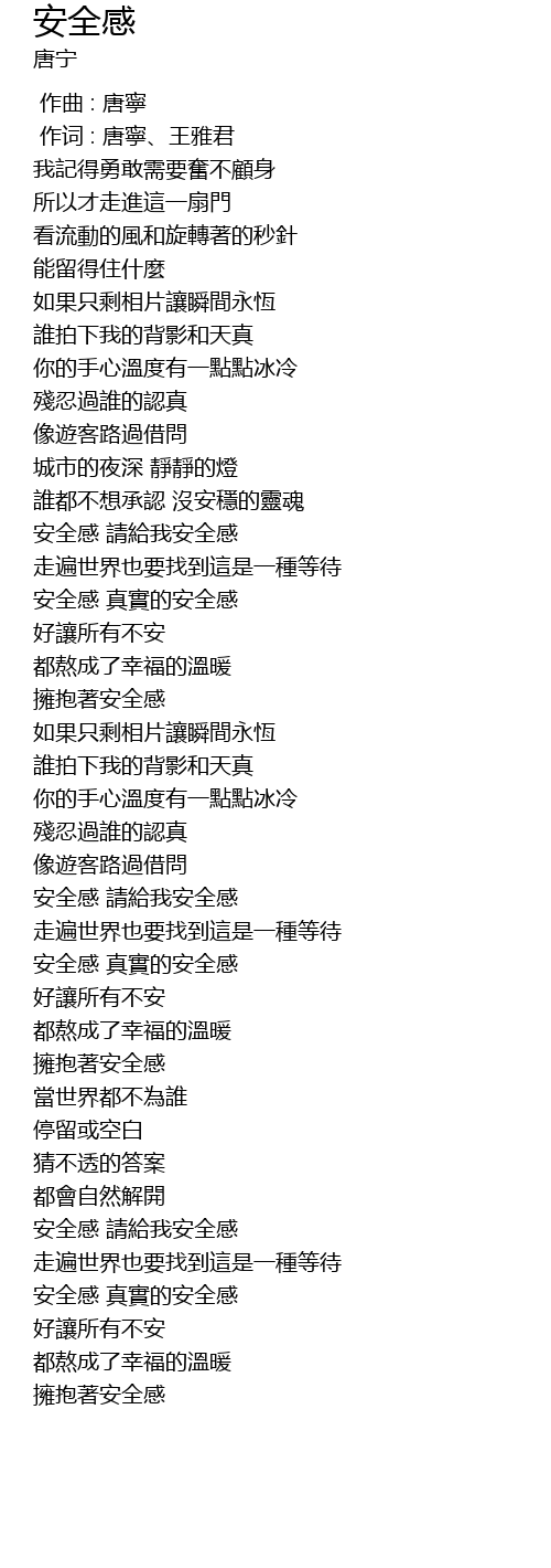 | [01:55.170] | ān quán gǎn zhēn shí de ān quán gǎn |