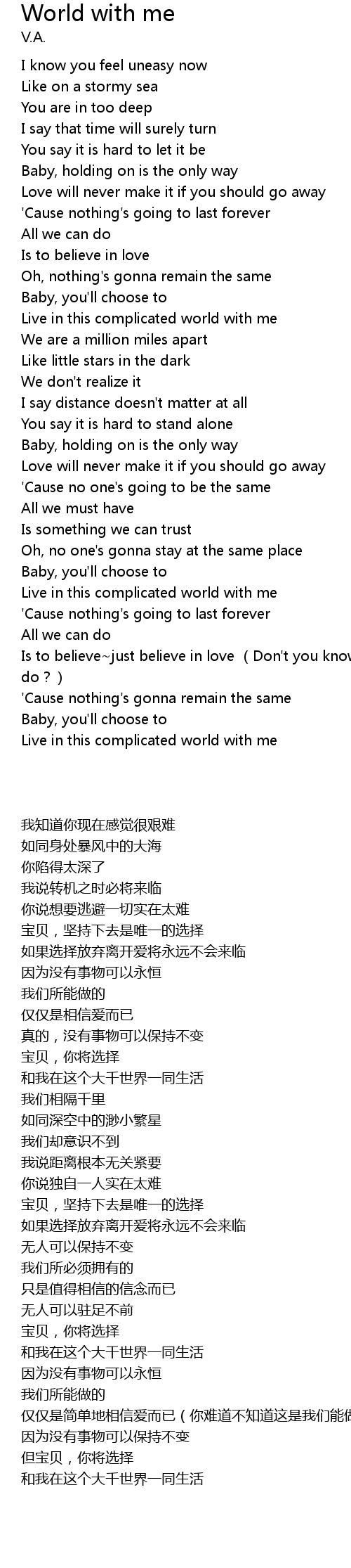 | [01:44.59] | Oh, nothing's gonna remain the same |