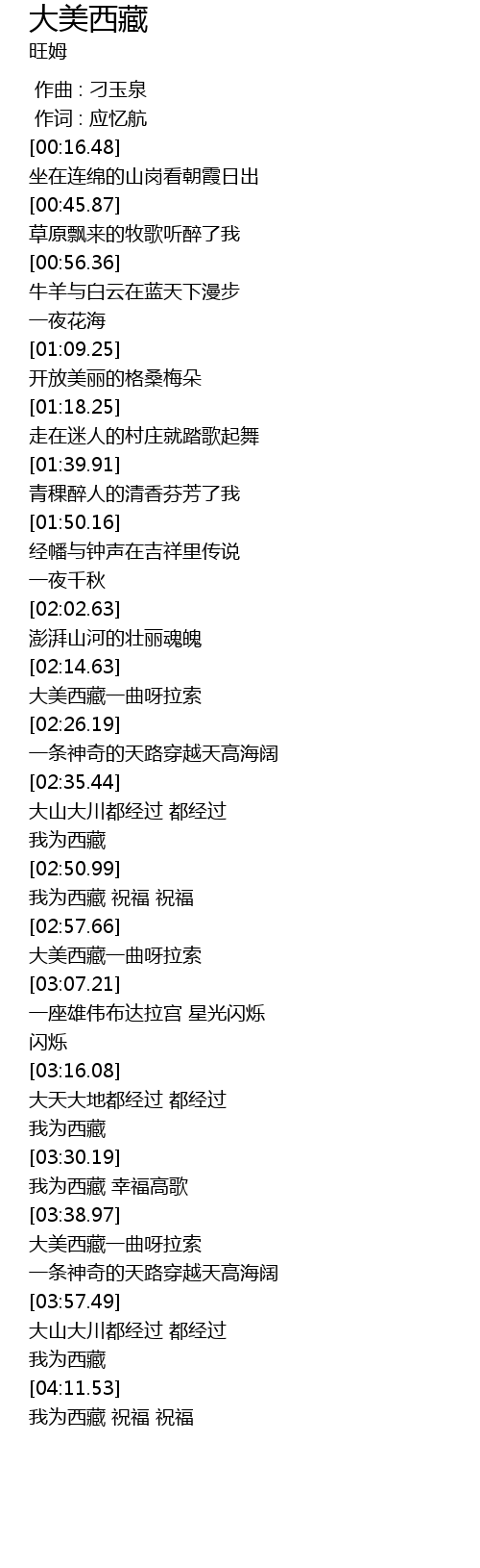 | [03:32.61] | 我为西藏 幸福高歌 |