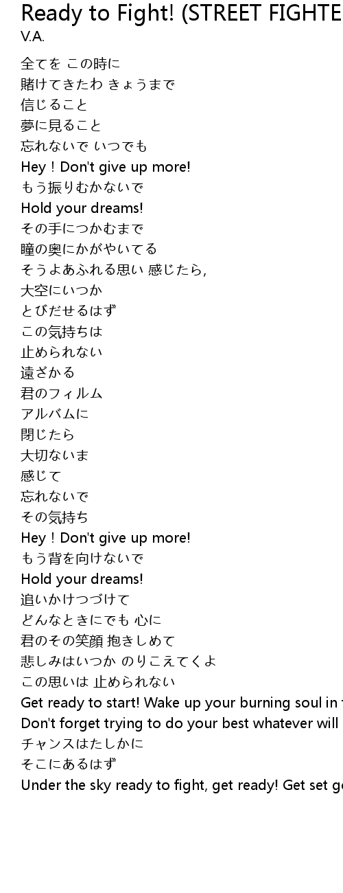 | [03:23.00] | Under the sky ready to fight, get ready! Get set go! |