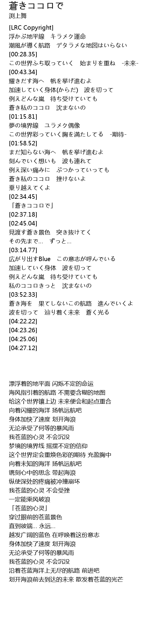 | [02:35.15] | 「蒼きココロで」 |