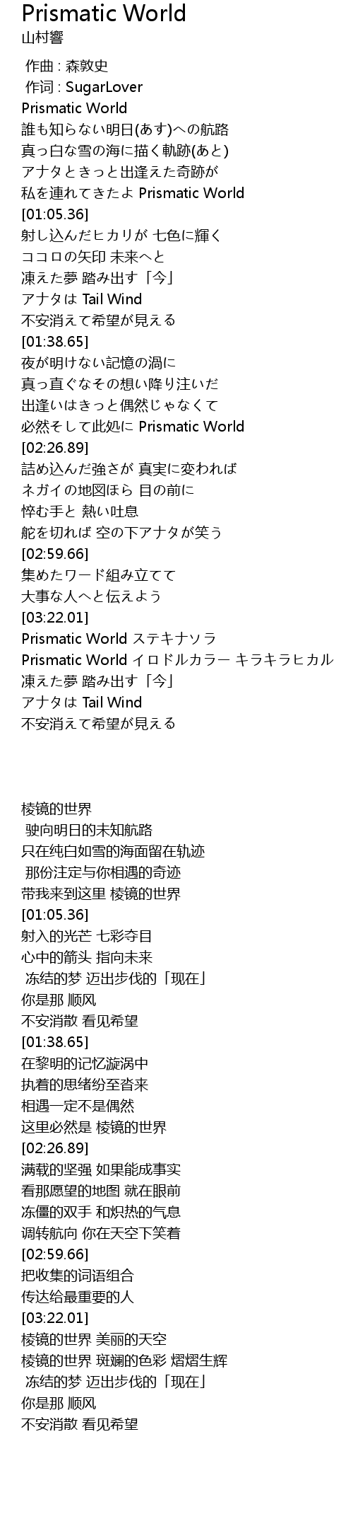 | [02:20.58] | 必然そして此処に Prismatic World |