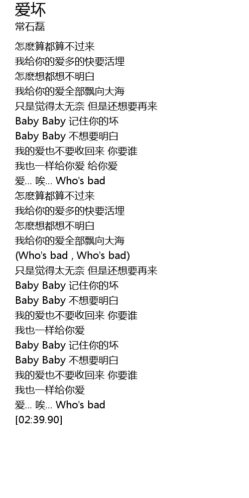 | [02:38.51] | 爱... 唉... Who's bad |