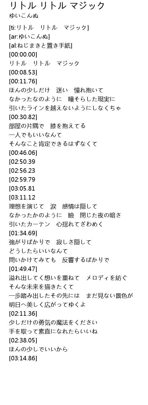 | [00:03.20] | リトル リトル マジック |