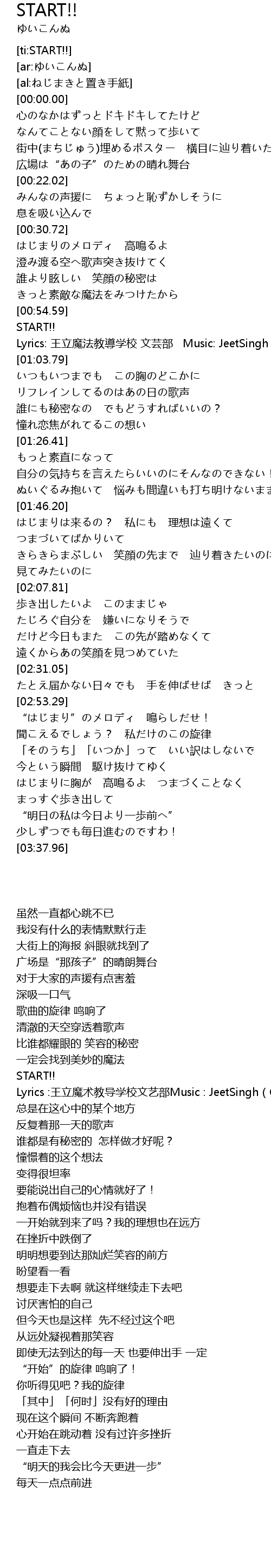 | [02:53.59] | “はじまり”のメロディ 鳴らしだせ! |