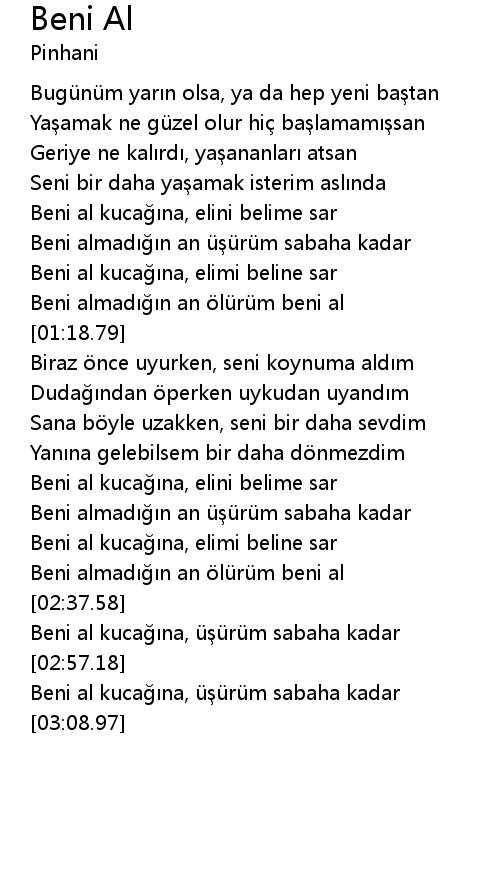 | [02:59.69] | Beni al kuca na, üü rü m sabaha kadar |