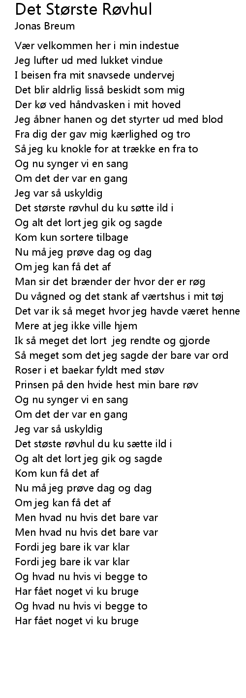 | Song | Det Største Røvhul |
