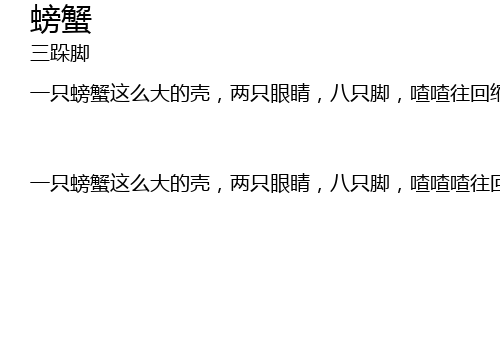 | 一只螃蟹这么大的壳,两只眼睛,八只脚,喳喳喳往回缩 |
