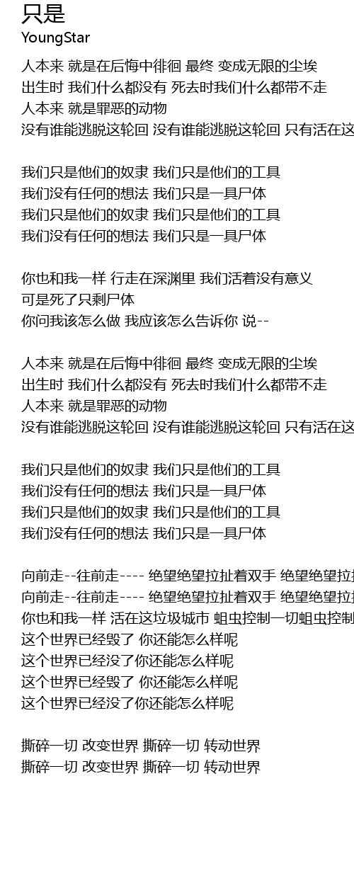 | 你也和我一样 活在这垃圾城市 蛆虫控制一切蛆虫控制着世界 | |