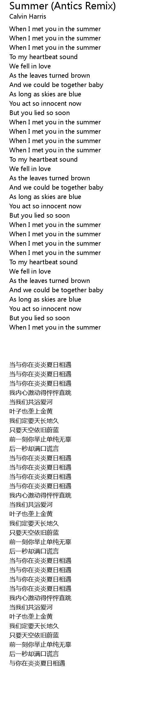 When I met you in the summer |