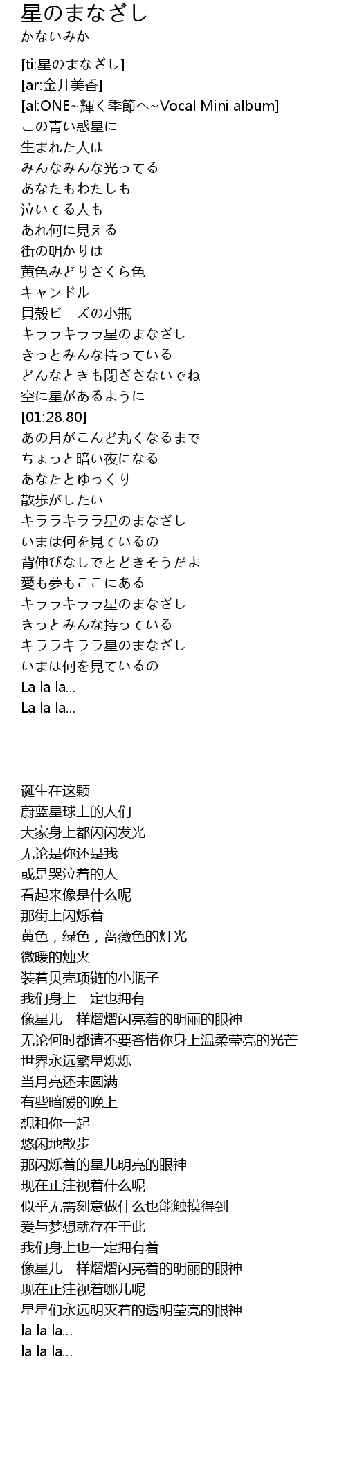 | [02:00.84] | キララキララ星のまなざし |