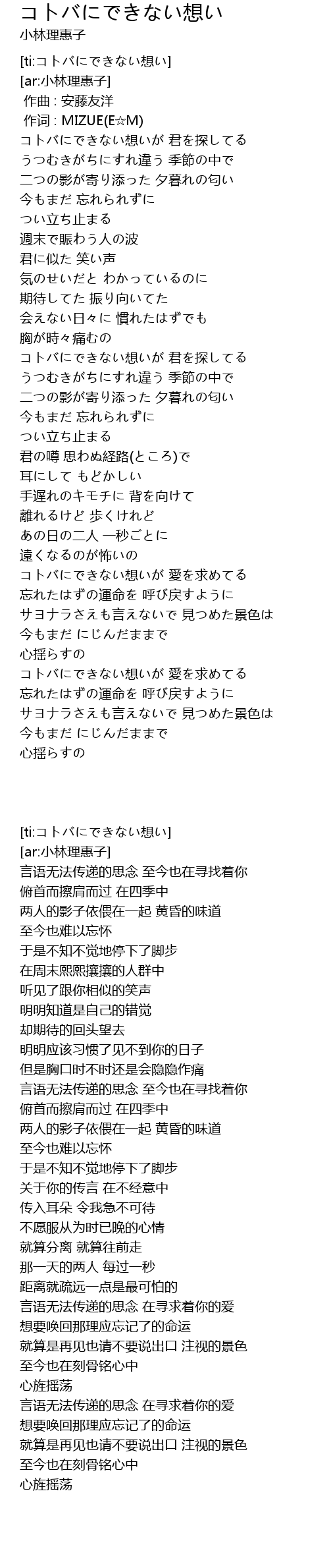 | [00:01.00] | zuò cí : MIZUE E M |