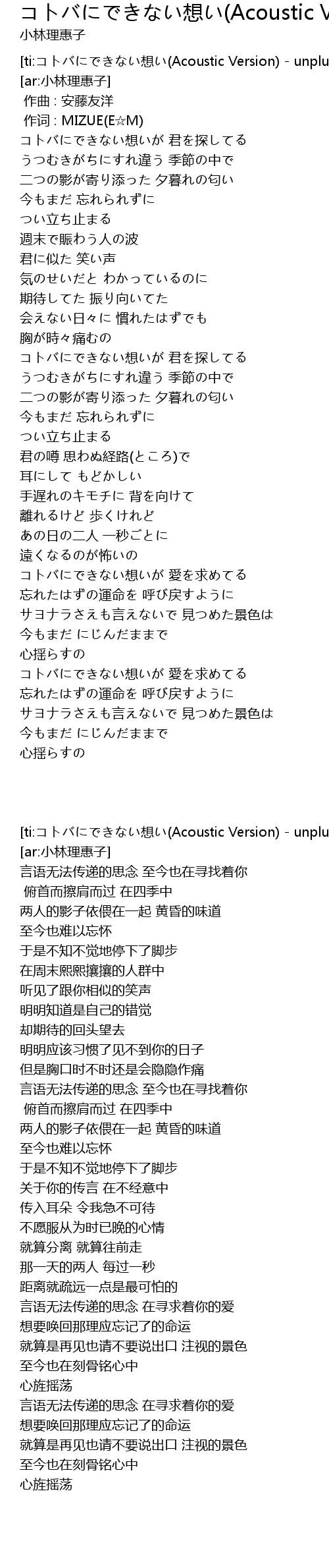 | [ti:コトバにできない想い(Acoustic Version) - unplug] | |