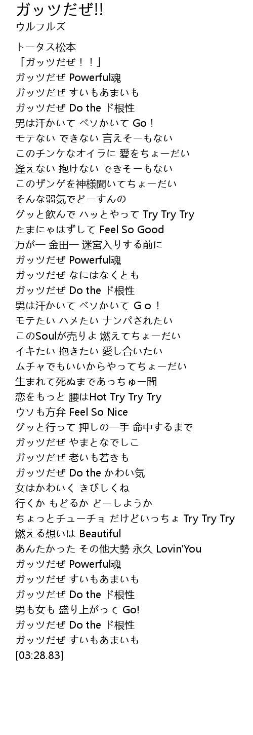 | [03:03.60] | ガッツだぜ Do the ド根性 |
