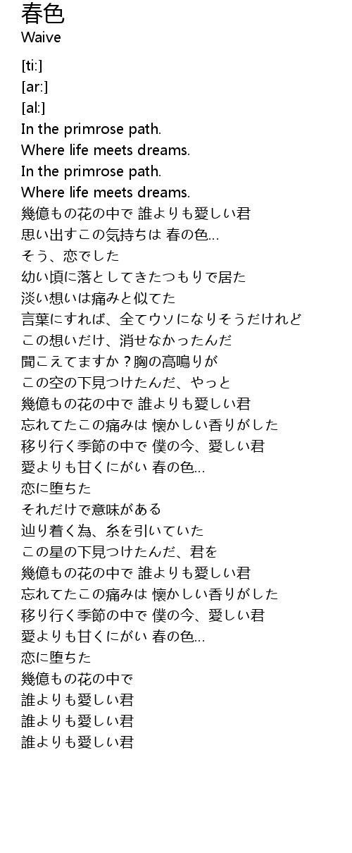 | [00:25.09] | 思い出すこの気持ちは 春の色… |