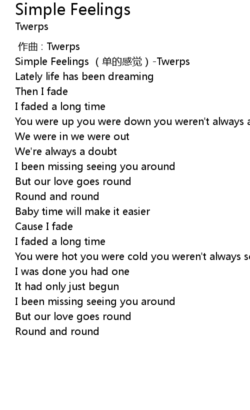| [00:00.00] | Simple Feelings (单的感觉)-Twerps |