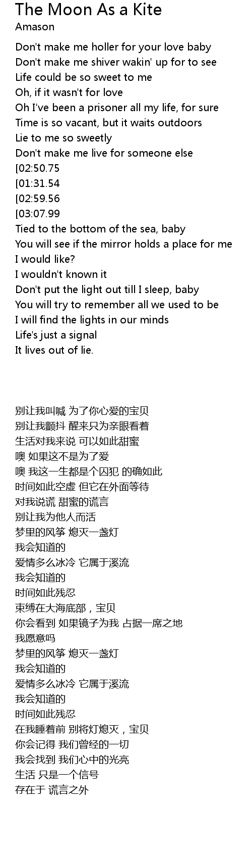 | [01:18.56][02:50.75] | Erasin' a light with a kite of a dream |