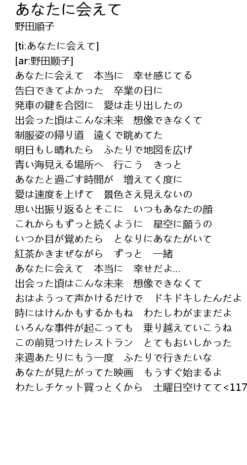 | [00:02.561] | あなたに会えて 本当に 幸せ感じてる |