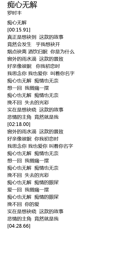 | [01:44.72] | 痴心也无解 痴情也无奈 |
