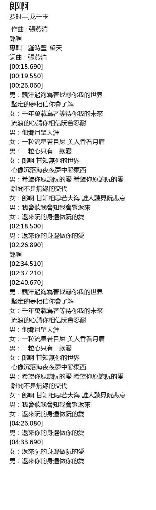 | [00:04.640] | 專輯:羅時豐-望天 |