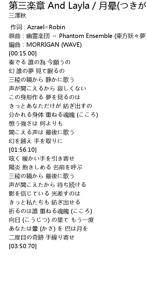 | Song | 第三楽章 And Layla / 月晕(つきがさ) |