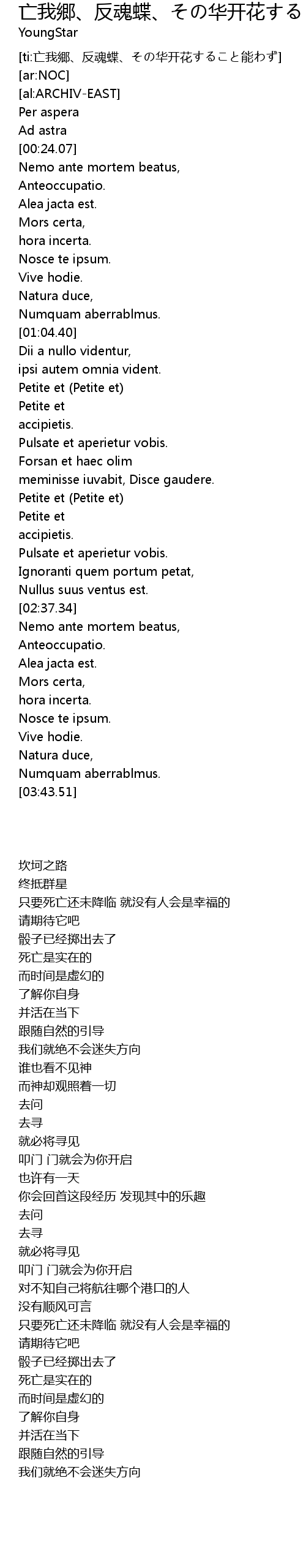 | [ti:亡我郷、反魂蝶、その华开花すること能わず] | |