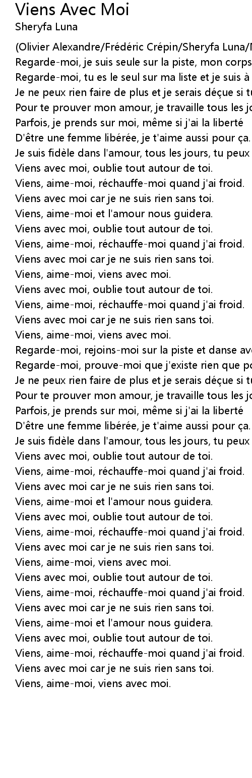 | Viens, aimemoi, ré chauffemoi quand j' ai froid. | |