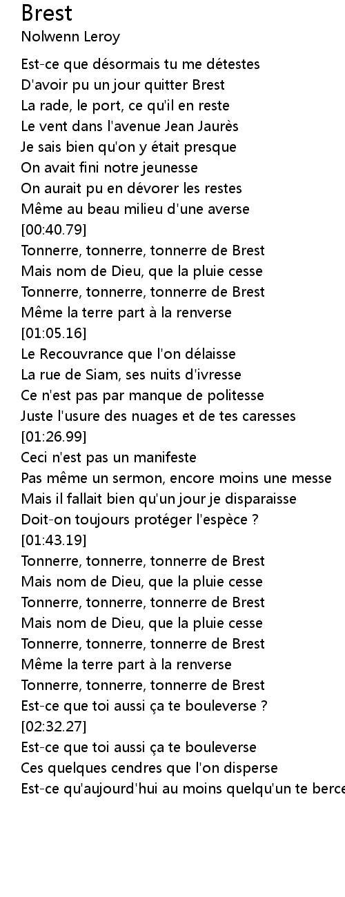 | [01:43.85] | Tonnerre, tonnerre, tonnerre de Brest |
