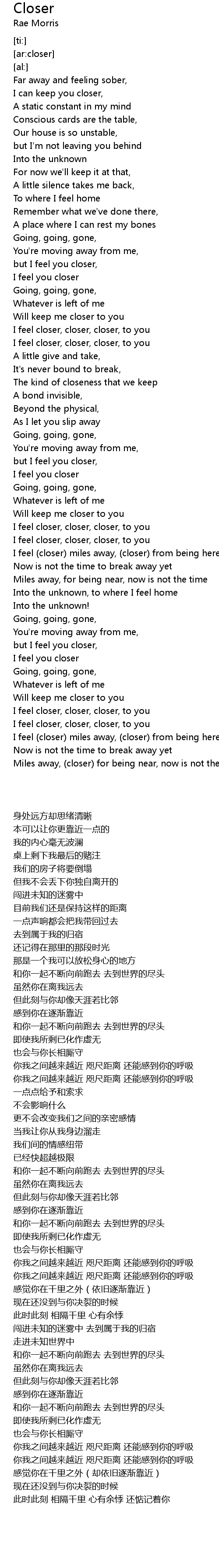 I feel (closer) miles away, (closer) from being here, (closer) |