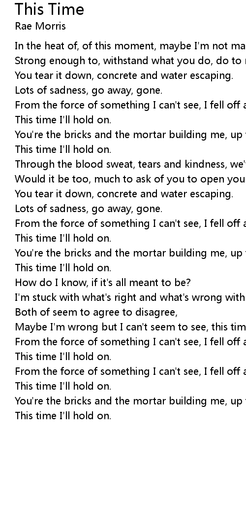 You're the bricks and the mortar building me, up to where I long to be, |