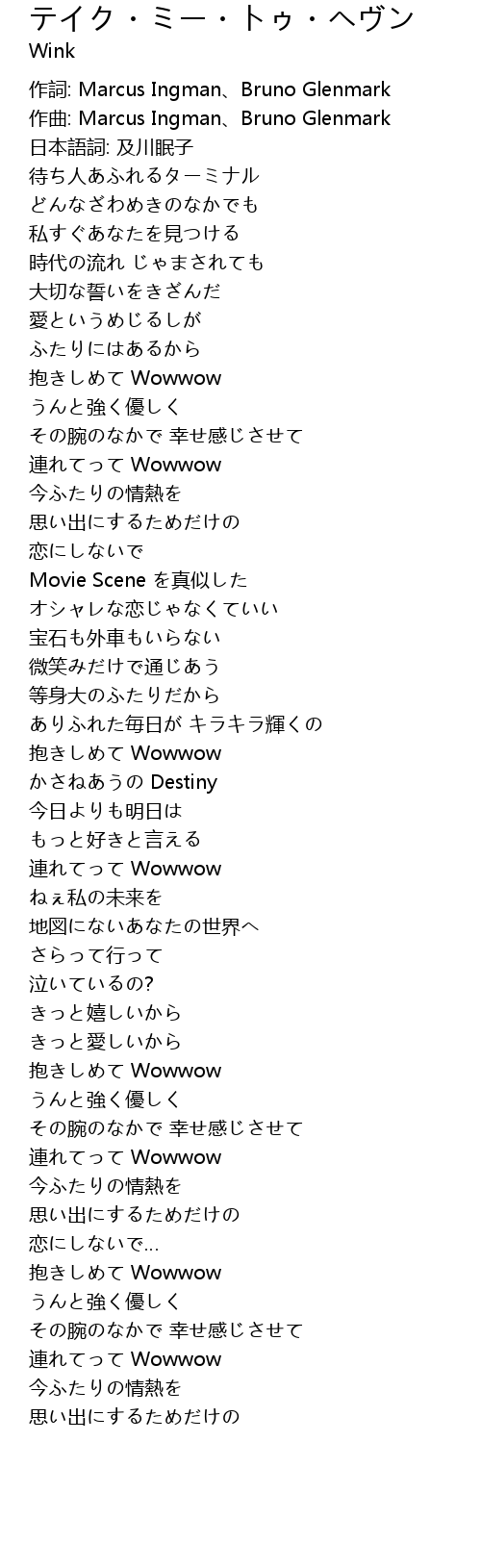 | [02:13.380] | 連れてって Wowwow |