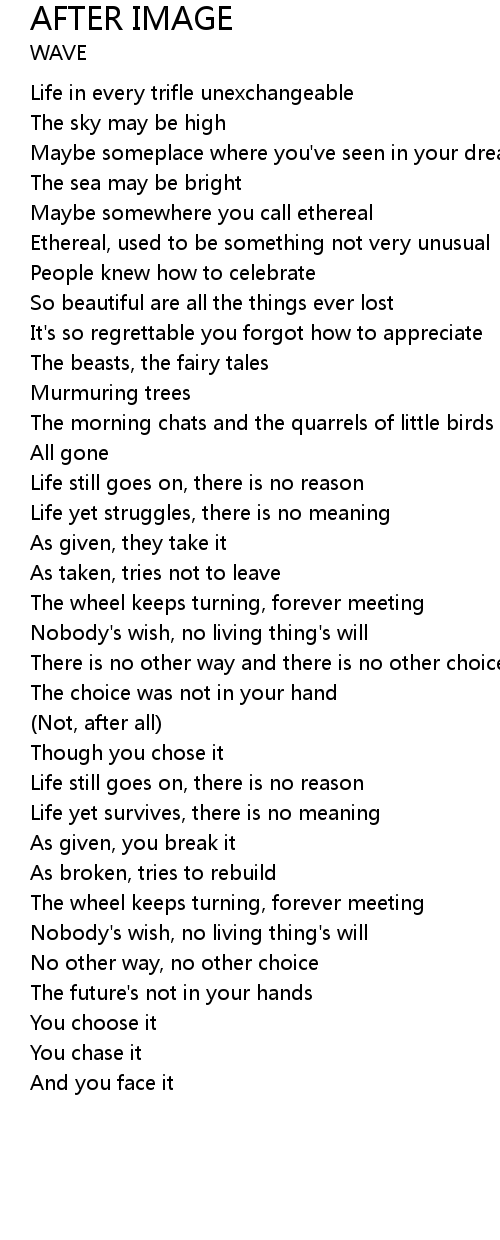 | [02:16.34] | The wheel keeps turning, forever meeting |