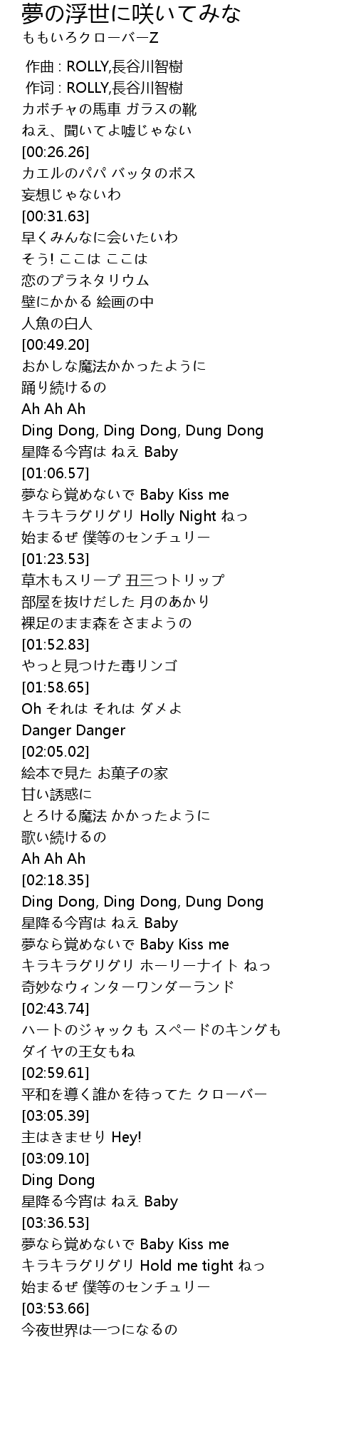 | [02:28.30] | 夢なら覚めないで Baby Kiss me |