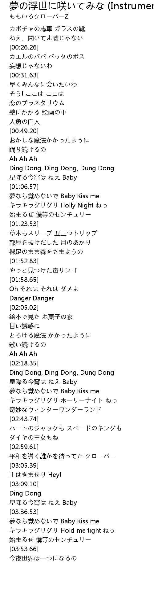 | [02:28.30] | 夢なら覚めないで Baby Kiss me |