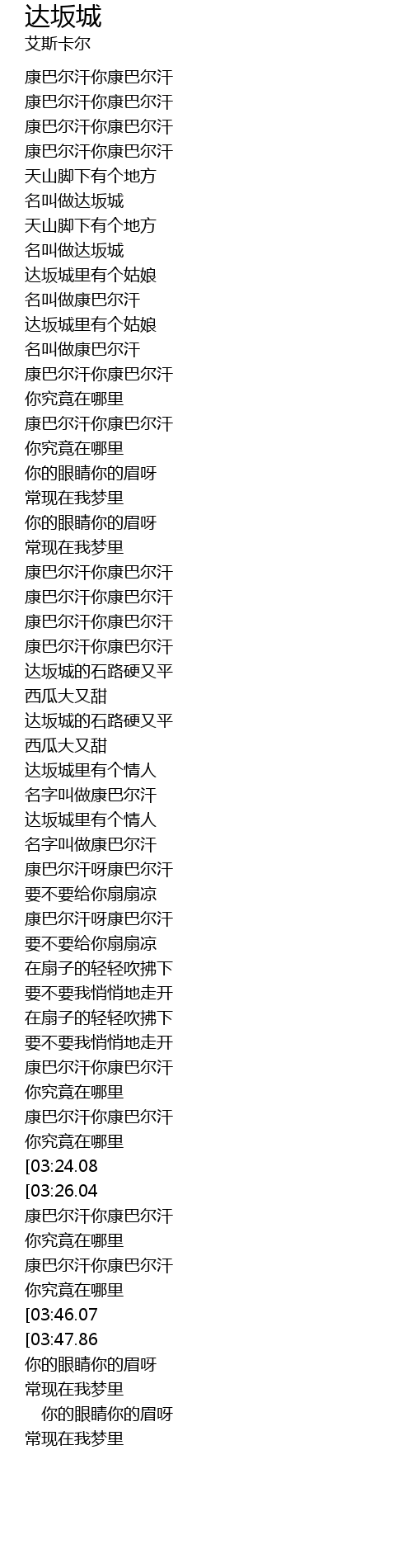 | [03:39.95] | 康巴尔汗你康巴尔汗 |
